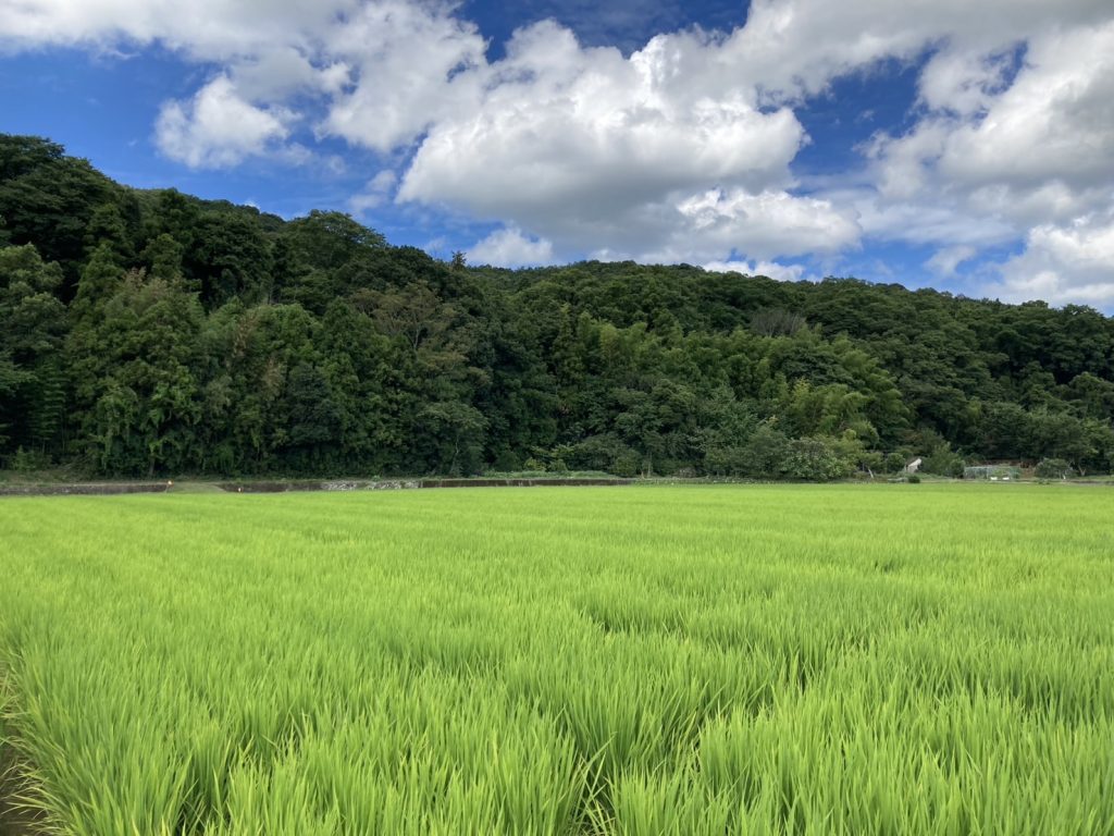 緑豊かな山々に囲まれた米づくりに適した土地